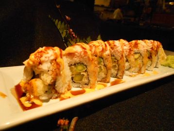 Flour, Red Ginger, octopus, mayo, fruit sauce, fragrant seaweed