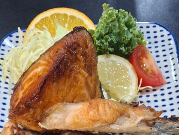 Grilled salmon collar cheek