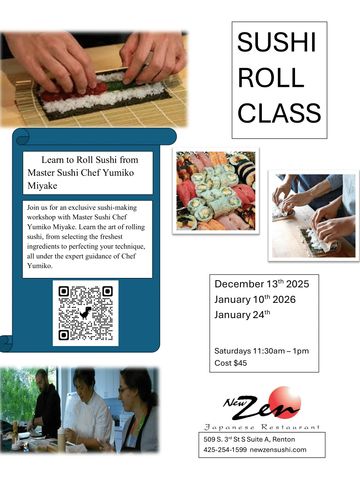 Cash payment: E-mail to yumi@newzensushi.com